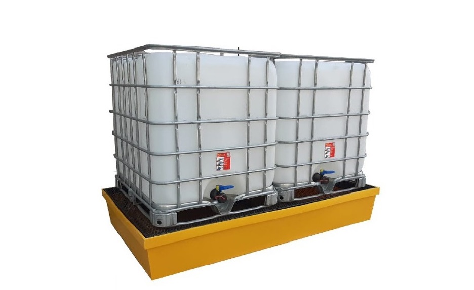 BATEA PLASTICA ANTI DERRAME PARA DOS BINS 1000Lts. C/ REJILLA METALICA