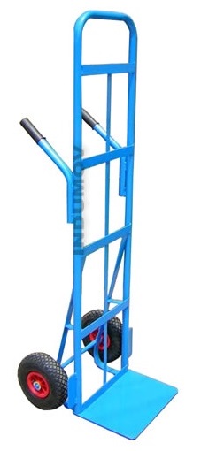 Carretilla cerrada recta con dos manijas tipo puños, estructura tubular reforzada para una capacidad de carga de 220 Kg las dimensiones de su pala en chapa de 1/8″ de espesor son de 500×300 mm, su altura es de 1.600 mm Con dos ruedas neumáticas de cuatro telas de diámetro 250 mm./ Macizas de diámetro 250 mm en PPl/PVC Acabado en esmalte epoxi de color azul (RAL-5012)