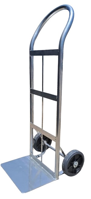 Carretilla reforzada de empuñadura cerrada, fabricada para una capacidad de carga de 240 Kg. las dimensiones de su pala en chapa de 1/8 » de espesor son de 400×300 mm, su altura es de 1.200 mm Con dos ruedas en PVC reforzadas de diámetro 200 mm en PPL/PVC Acabado en esmalte epoxi color gris (RAL 5016) Acabado en esmalte epoxi de color azul (RAL-5012)