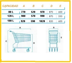 | Capacidad De Carga | 120 Lts., 136 Lts., 180 Lts., 80 Lts. |