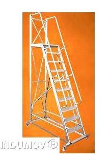 Escaleras rodantes tipo burro de aluminio INDU.MOV®, diseñadas para su utilización en sitios donde por norma de exigencia lo requieran por ejemplo en ambientes sanitarios, laboratorios medicinales o bien en ambientes corrosivos Fabricada con perfilería de duraluminio en C con escalones de 140 mm de pisada y barandas perimetrales en caño estructural de 1″x2,0 mm Dentro de los modelos de escaleras extensibles contamos con las escaleras con ruedas, barandas laterales y descanso superior para escaleras extensibles Estas se denominan escaleras industriales ya que son de fácil desplazamiento y están montadas sobre una plataforma móvil. Las escaleras industriales son de excelente estabilidad, extremadamente resistentes y durables.