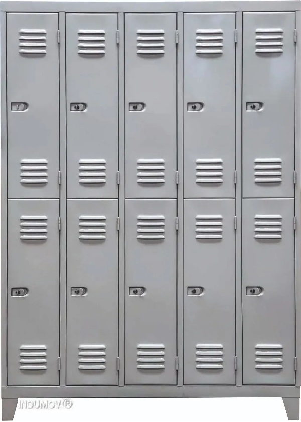 MODELO:GPC-10P Guardarropas De10 puertas cortas (1.900×1.500×500 mm), MATERIAL Chapa 24 de Acero D.D. reforzada laminada en frío calibre 0,56 mm, CIERRE Para Candado, ACABADO Pintura Esmalte Epoxi liquido PUERTAS La medida de la puerta de 250 mm x 820 mm, contiene rejilla de ventilación y dos bisagras por puertas, PATAS SANITARIAS calibre 1,20 mm. (Chapa 18) COLOR ESTANDAR (beige, marrón, gris claro, gris oscuro y azul)