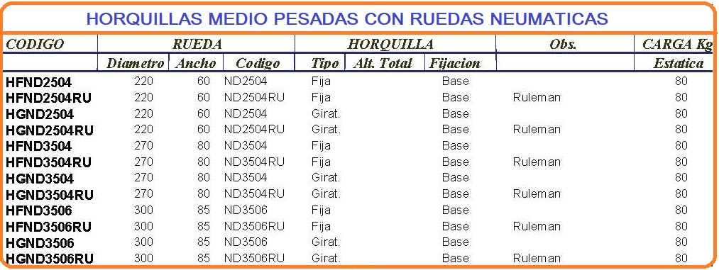 HORQUILLAS GIRATORIAS Y FIJAS CON RUEDAS NEÚMATICAS