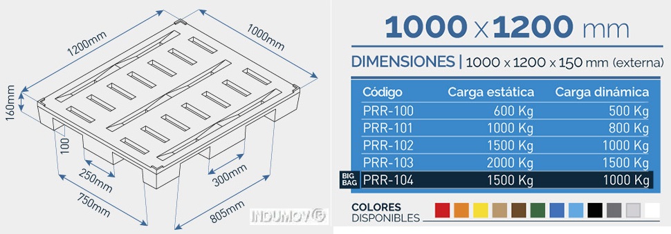 PALLET DE PLÁSTICO POR ROTOMOLDEO DE 1.000×1.200mm