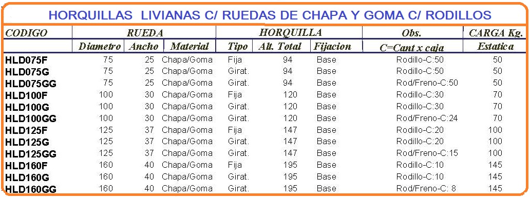 HORQUILLAS LIVIANAS CON RUEDAS DE CHAPA Y GOMA