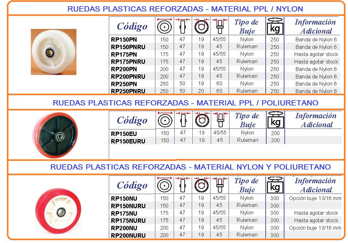 RUEDAS REFORZADAS DE POLIPRIPILENO / NYLON