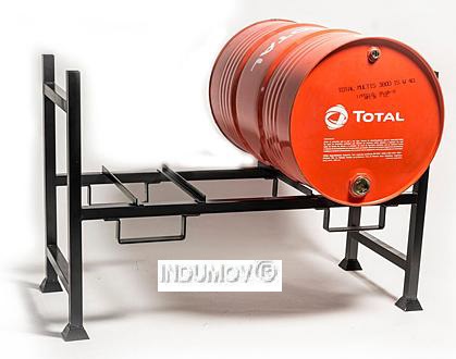 Soporte Simple para dos tambores del tipo comercial de 205 Lts. Su aplicación está indicada tanto para el interior como para el exterior de plantas industriales Acabado en esmalte epoxi de color azul (RAL-5012)