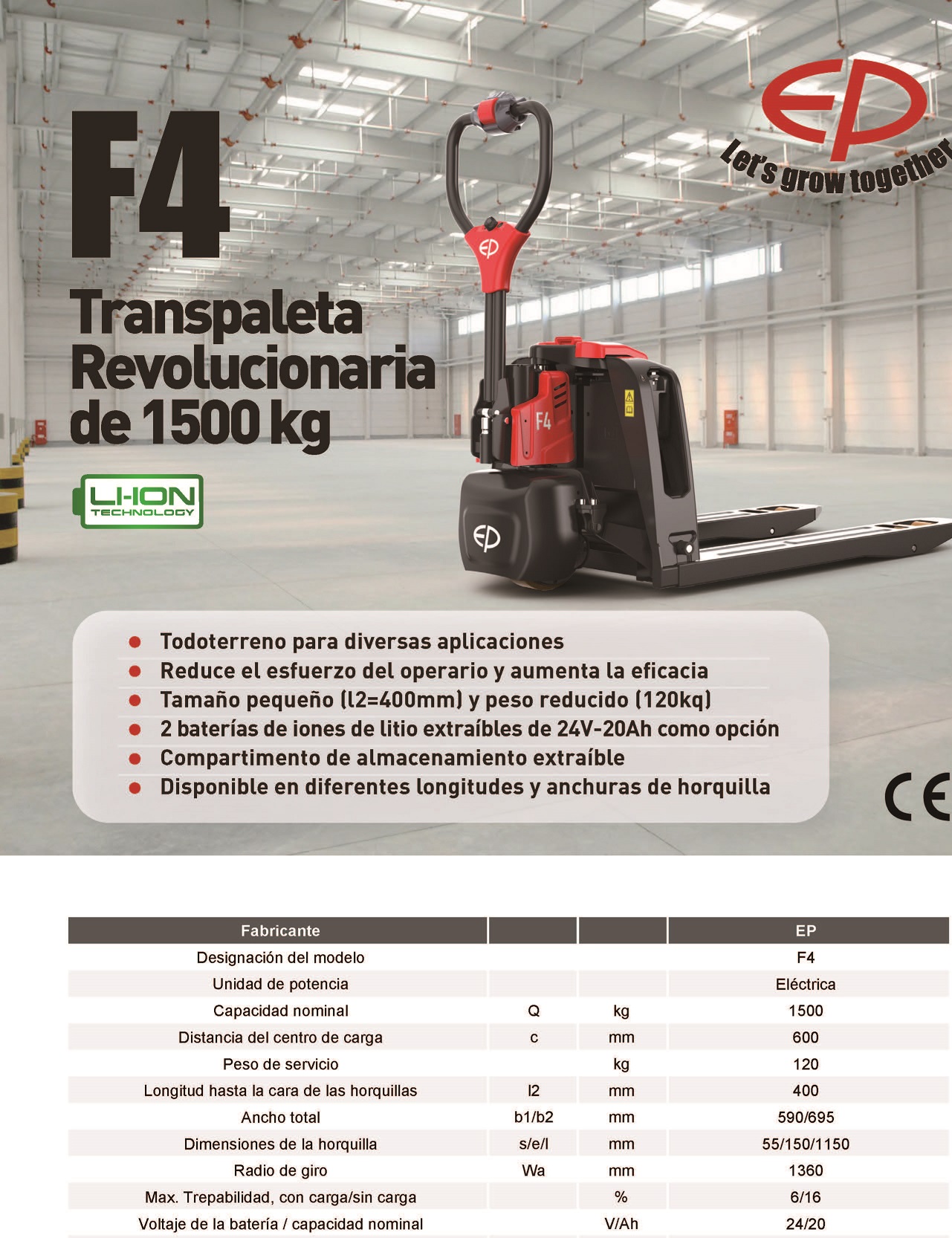 Zorra Hidráulica Eléctrica BATERIA DE LITIO 2.0TN