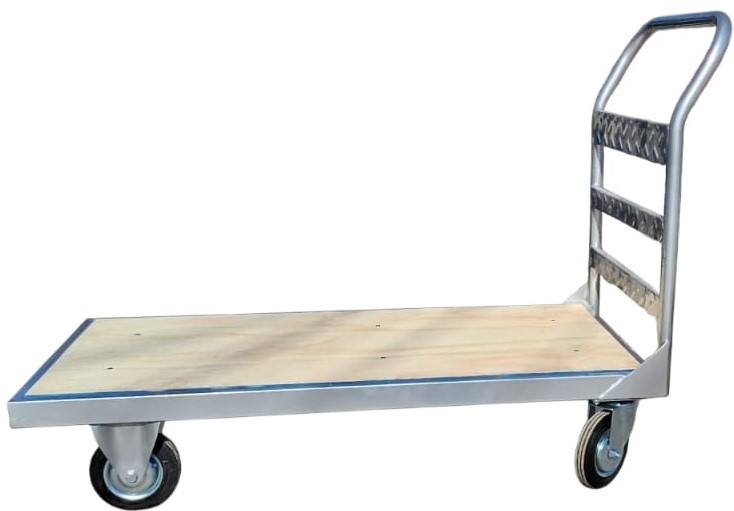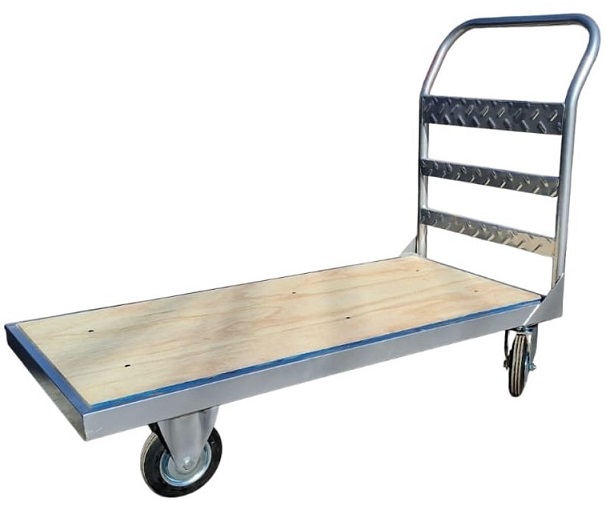 Esta zorra Manual de carga de construcción liviana preparada para una capacidad de carga de 400 Kg se fabrica con piso de chapa lisa N° 18 o bien, multilaminado fenolico, su bastidor perimetral en caño estructural de 50x20x1,6 le confiere una optima resistencia Posee una baranda de empuje construida en caño estructural de diámetro 11/4″x1.6 mm, cerrada con planchuelas de 2″x 1/8″